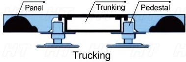 HT OA Intelligent Network Floor is made of good quality cold-rolled steel sheet with foaming cement fully filled. The borders of the panel are trimmed with corner-lock holes. Trucking can be placed at any point without cutting floor, much easier for inspecting and repairing. Strong current and weak current can be separated, suitable for all kinds of wires and plug socket terminals.