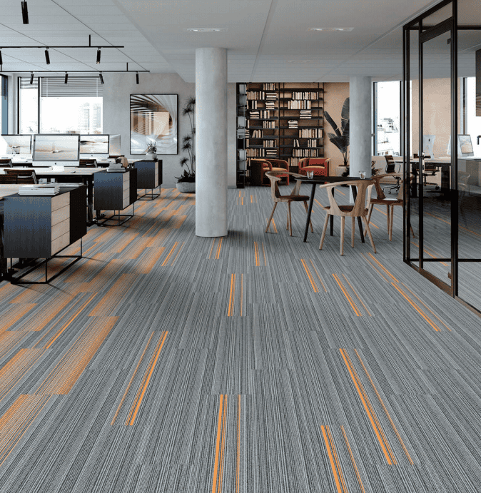 Thảm tấm CP100 hoa văn xọc, màu sắc đẹp, chất liệu polypropylene. Thảm tấm CP100 chuyên lót sàn văn phòng, trường học, đế pvc, thân thiện môi trường. VietFlor cung cấp và thi công thảm tấm chuyên nghiệp.